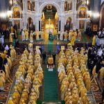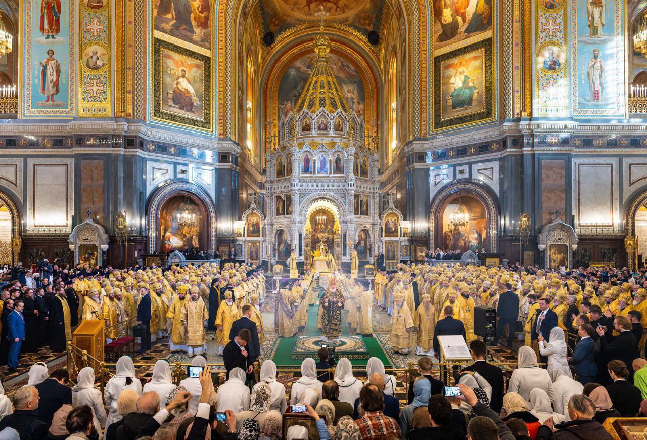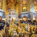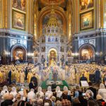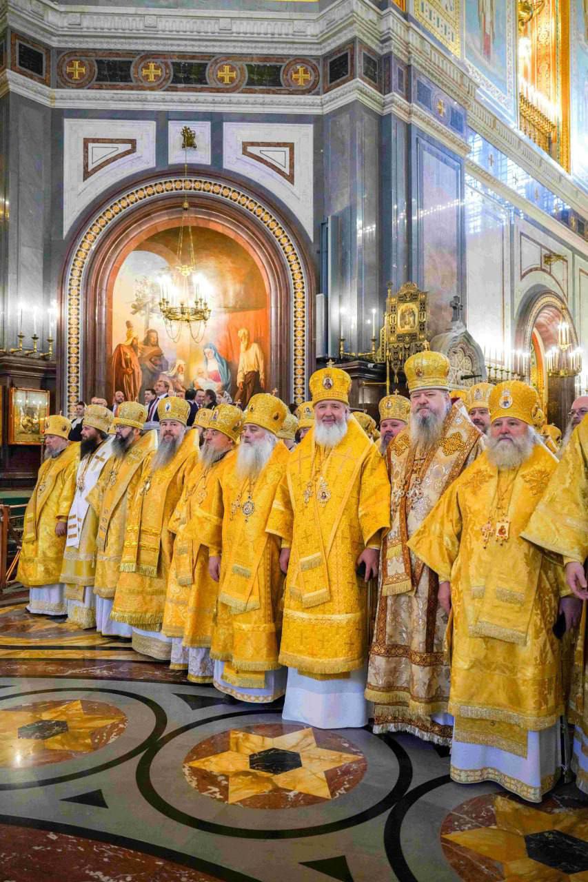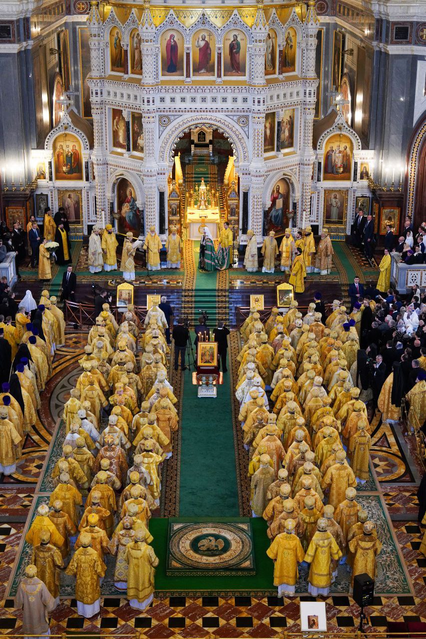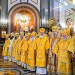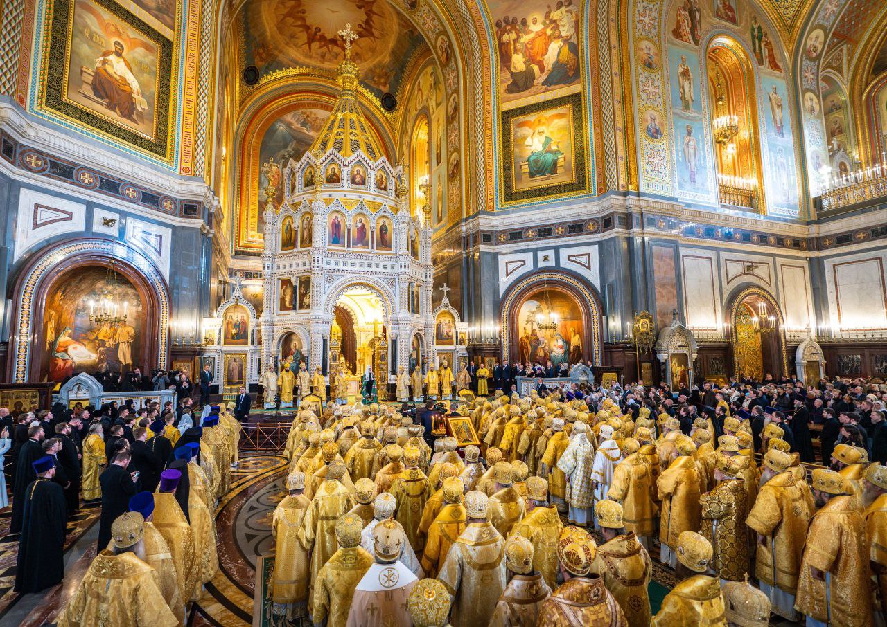 On this significant day, His Holiness Patriarch Kirill celebrated the Divine Liturgy in the Christ the Savior Cathedral in Moscow, wearing his enthronement vestments and holding a replica of St. Peter’s staff.