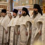The archpastors were co-served by the acting Hegumen Joseph (Kryukov), head of the St. Petersburg metochion of the Transfiguration of the Savior Valaam Monastery; Hieromonk Kirill (Korytko), secretary of the Tatarstan Metropolitanate; Archpriest Alexander Menzelintsev, rector of the Church of the Icon of the Mother of God “Sedmiezernaya” in Mytishchi; Hieromonk Korniliy (Molev), secretary of the Philippine-Vietnamese Diocese; and clergy of the Khanty-Mansiysk Metropolitanate. The deacon’s rank was led by Protodeacon Georgy Stefanov, a cleric of the Tikhvin Diocese.