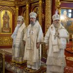 The service was led by Metropolitan Kirill of Kazan and Tatarstan, Metropolitan Sergius of Singapore and Southeast Asia, Metropolitan Pavel of Khanty-Mansiysk and Surgut, Administrator of the Diocese of the Philippines and Vietnam, Metropolitan Evgeny of Yekaterinburg and Verkhoturye, Archbishop Nikolai of Salekhard and Novy Urengoy, Bishop Mstislav of Tikhvin and Lodeynoye Pole, and Bishop Mikhail of Yugra and Nyagan.