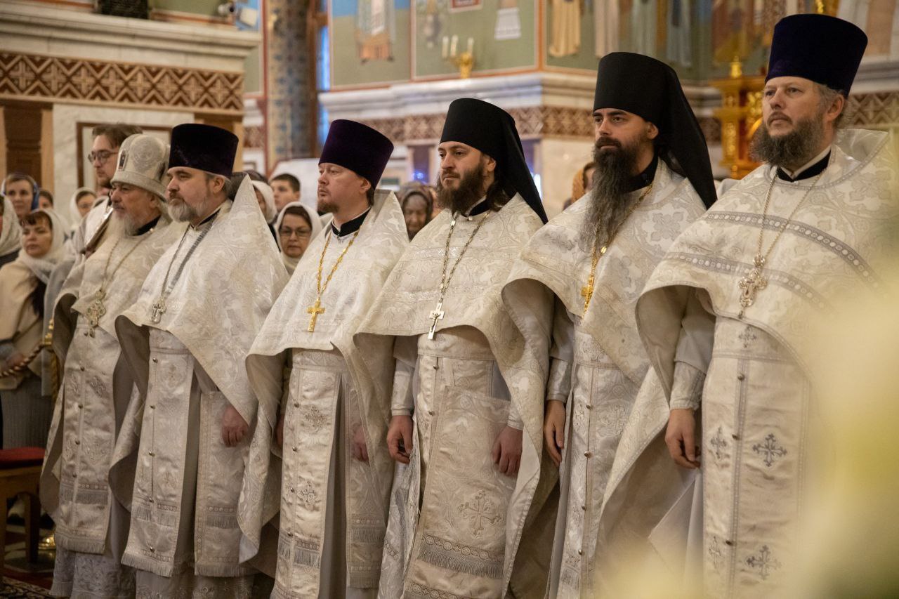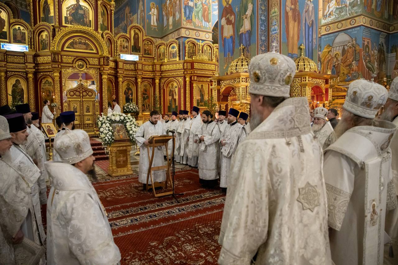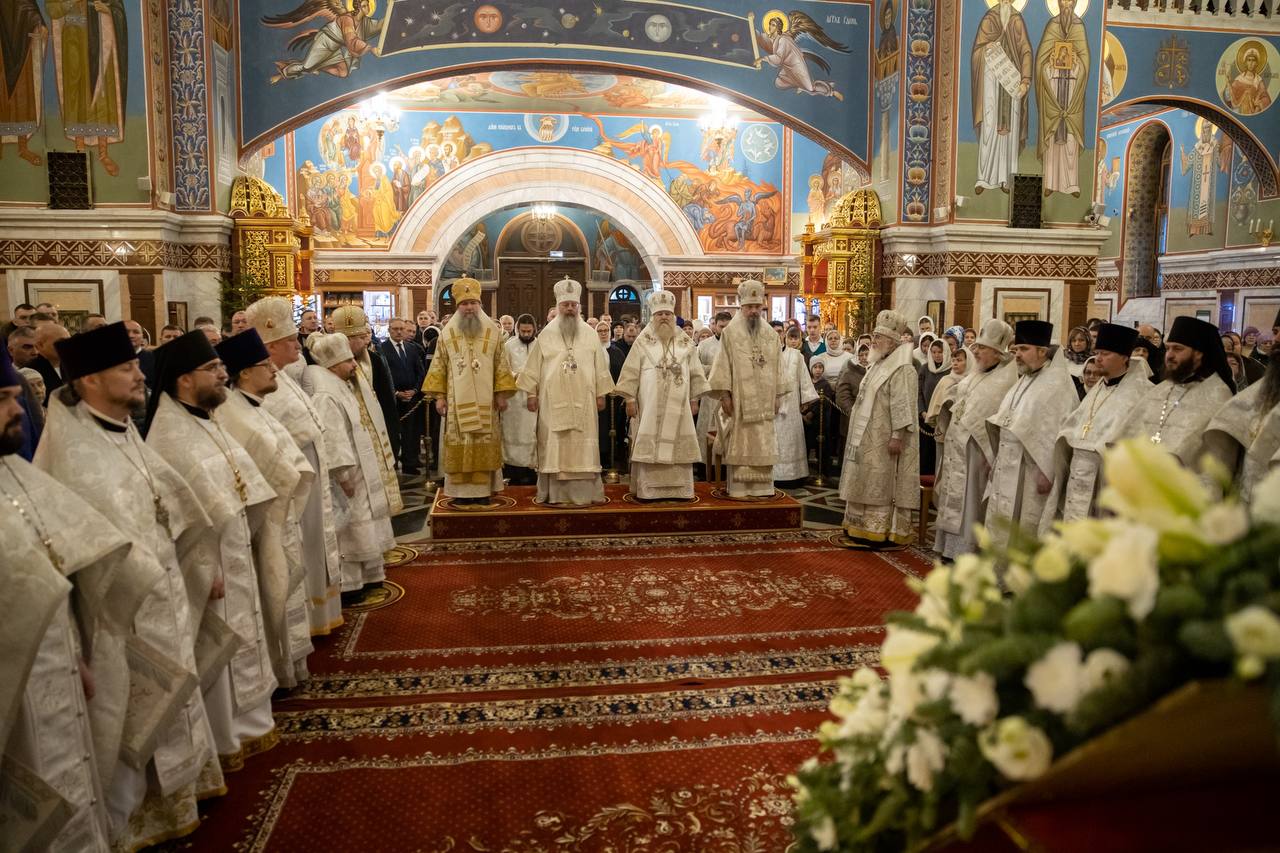 The service was led by Metropolitan Kirill of Kazan and Tatarstan, Metropolitan Sergius of Singapore and Southeast Asia, Metropolitan Pavel of Khanty-Mansiysk and Surgut, Administrator of the Diocese of the Philippines and Vietnam, Metropolitan Evgeny of Yekaterinburg and Verkhoturye, Archbishop Nikolai of Salekhard and Novy Urengoy, Bishop Mstislav of Tikhvin and Lodeynoye Pole, and Bishop Mikhail of Yugra and Nyagan.
