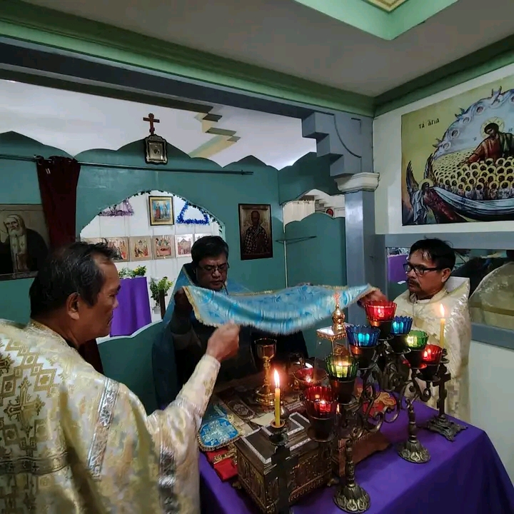 On Friday of the sixth week of Lent, the Sacrament of Unction took place at the Parish of the Iveron Icon of the Mother of God in Manila. Priests of the Manila Deanery participated: Archimandrite Philemon (Castro), Priest David Grubbs, Hieromonk John (Gondayao), and Priest Luke Abouna of the Antiochian Orthodox Church.