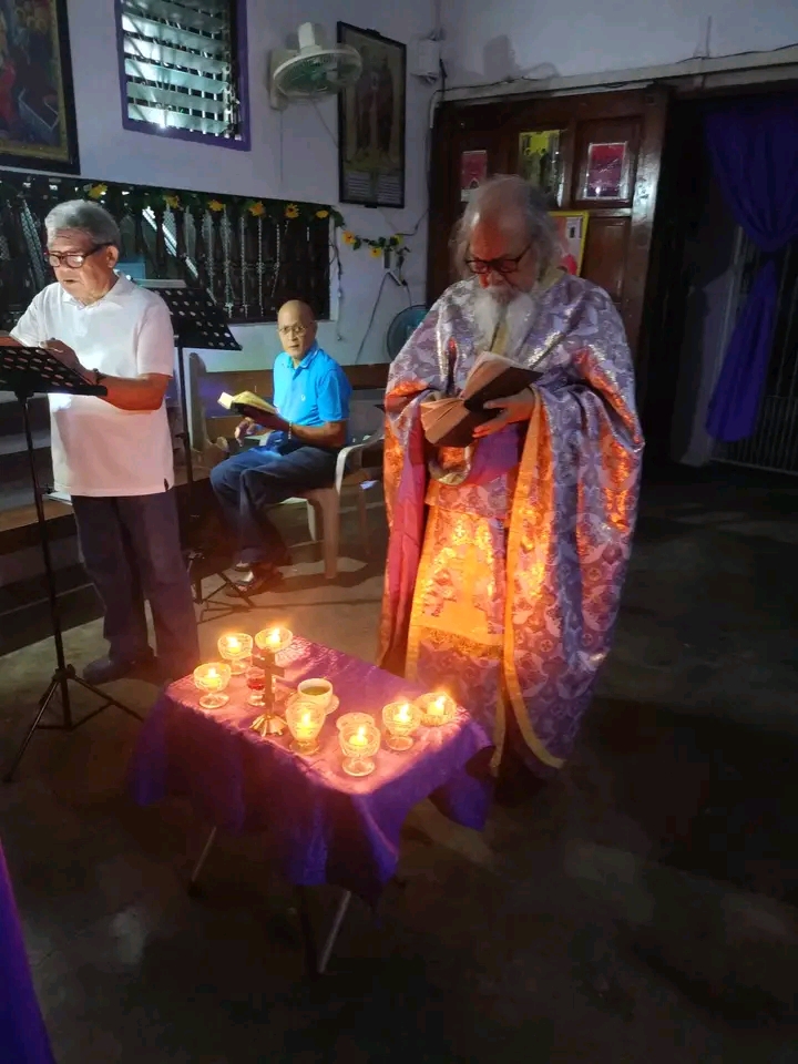 On Friday of the sixth week of Lent, the Sacrament of Unction took place at the Parish of the Iveron Icon of the Mother of God in Manila. Priests of the Manila Deanery participated: Archimandrite Philemon (Castro), Priest David Grubbs, Hieromonk John (Gondayao), and Priest Luke Abouna of the Antiochian Orthodox Church.