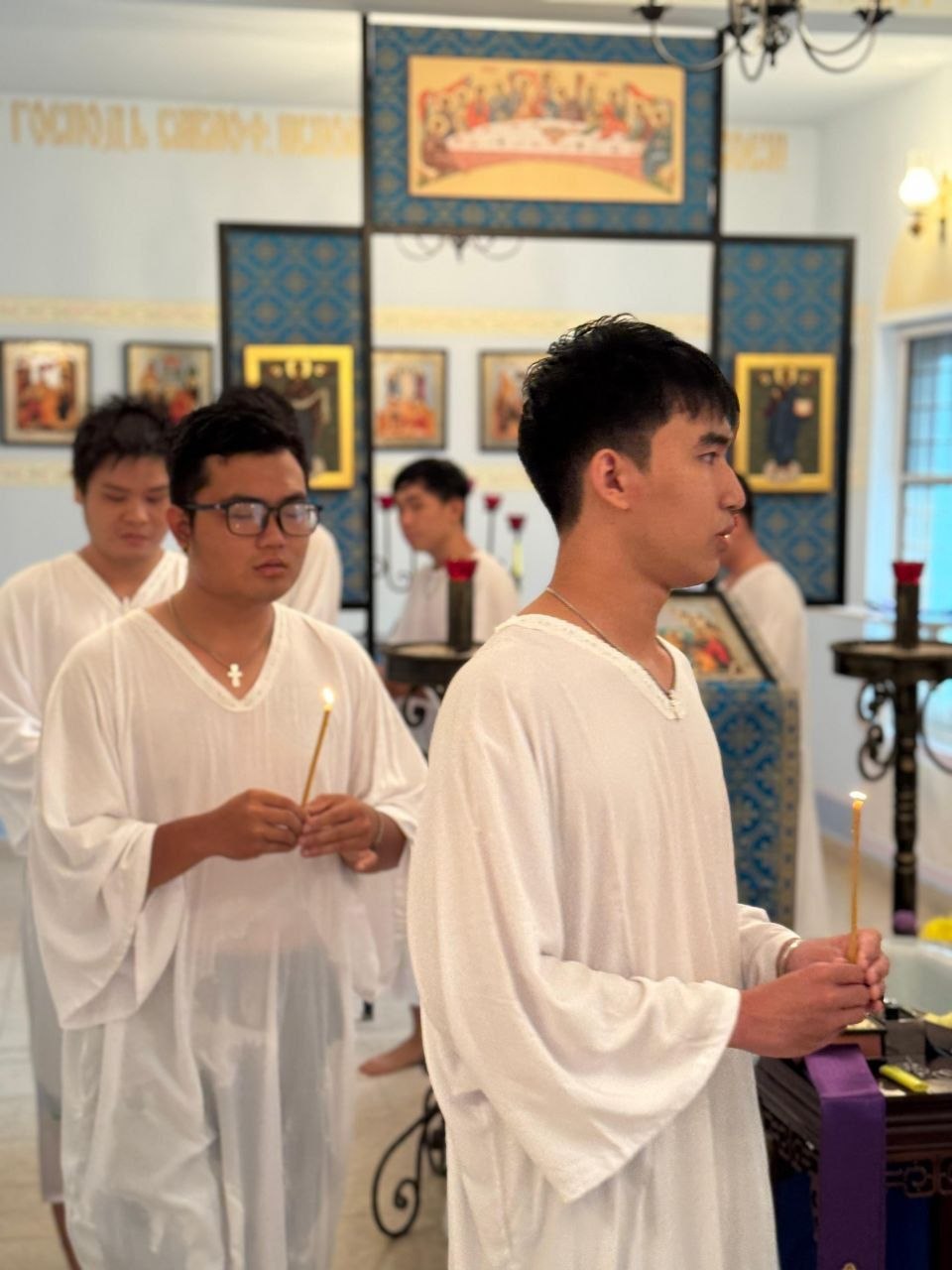After a lengthy catechumenate, eight people were united with the Church of Christ. They were given the names Gabriel, Christopher, Michael, Benjamin, Luke, George, Timothy, and Nicephorus.