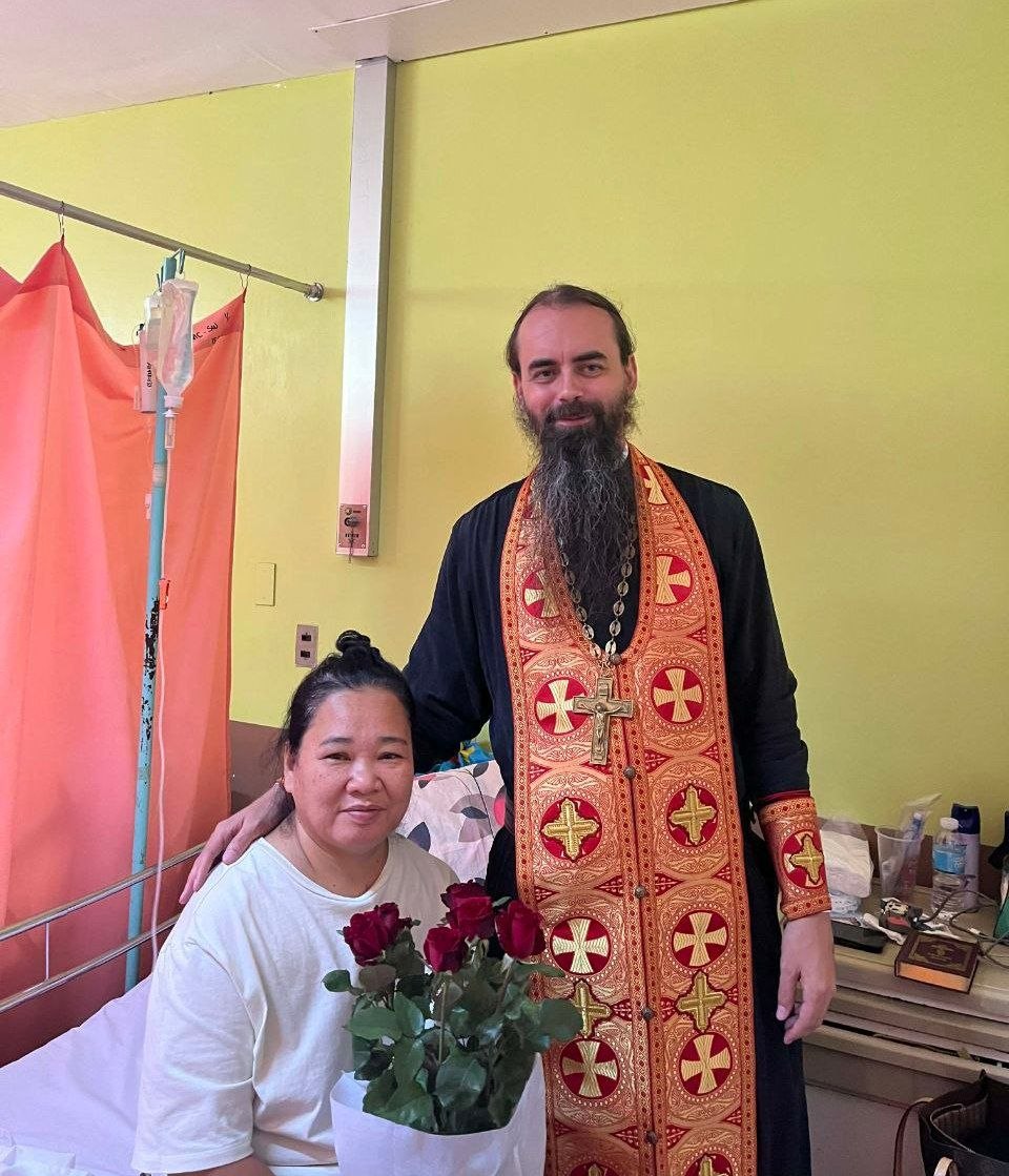 Following the service, the diocesan secretary, Hieromonk Korniliy (Molev), visited the hospital, where he administered Holy Communion to Ruth, a sick parishioner who is preparing for surgery. We ask for your prayers for her health and the success of her operation.