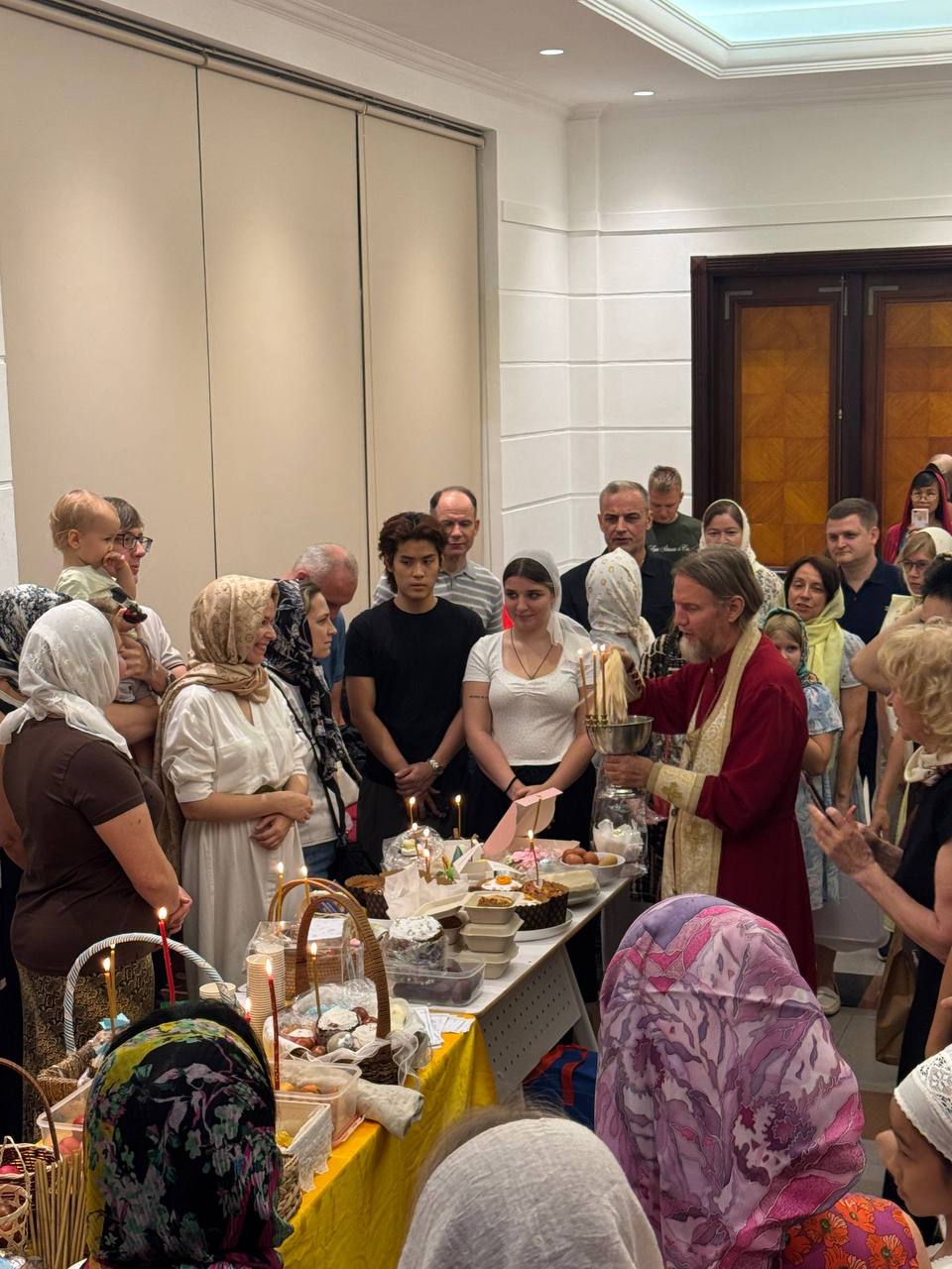 Following the service, the blessing of the Easter food was performed, followed by festive greetings, a shared meal, and fellowship among all parishioners.
