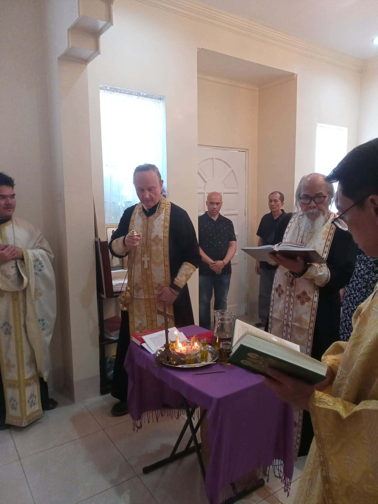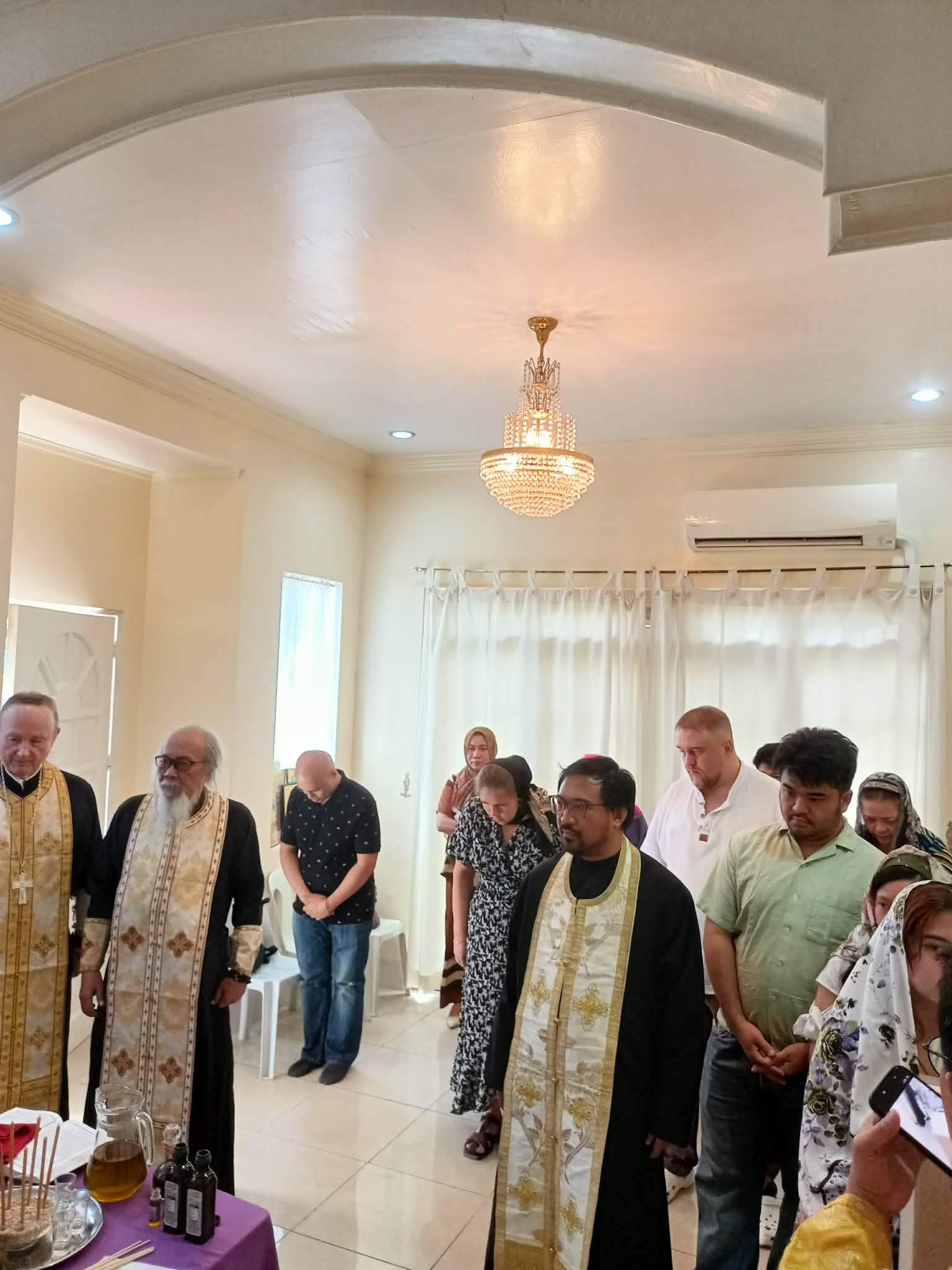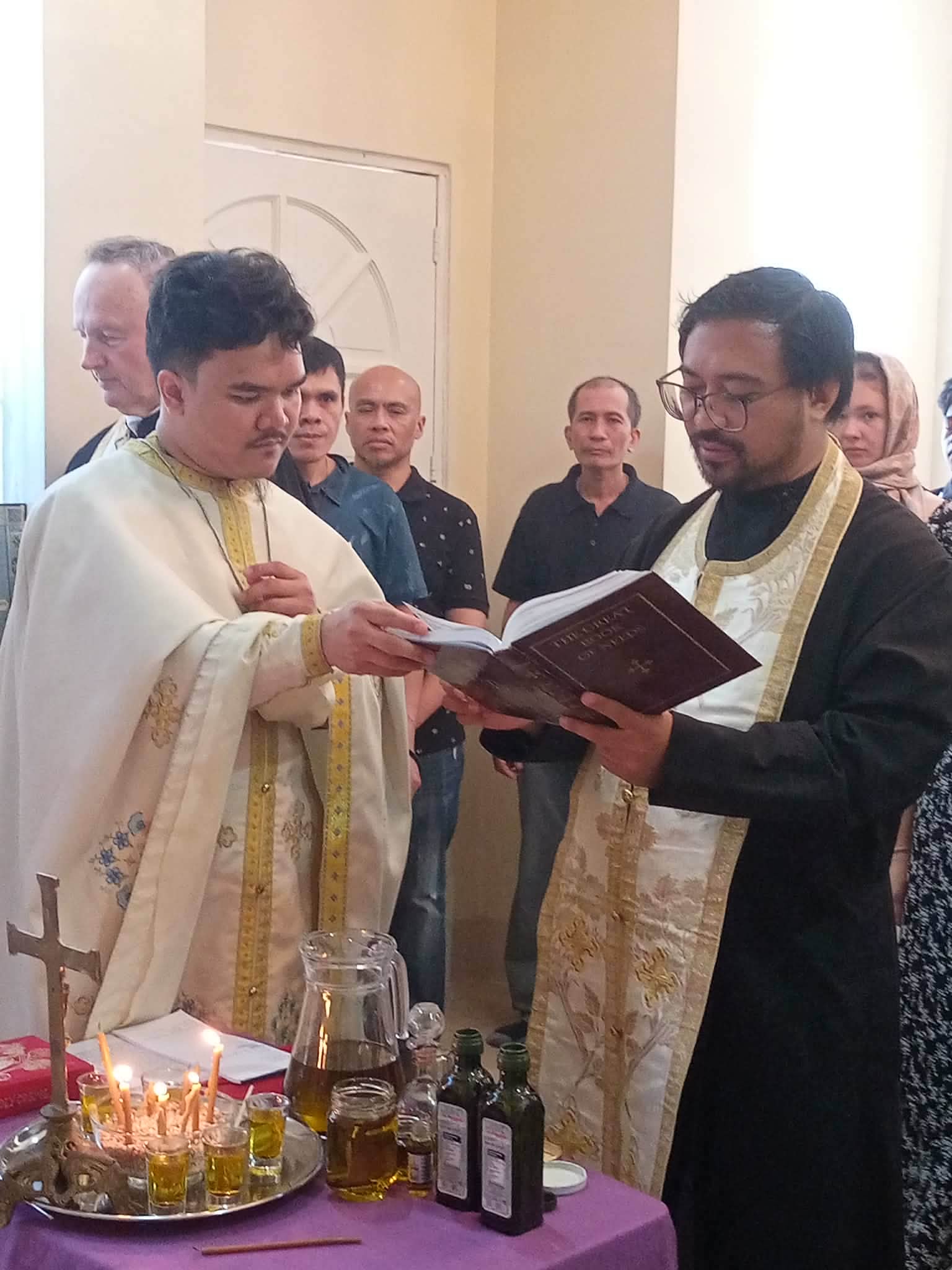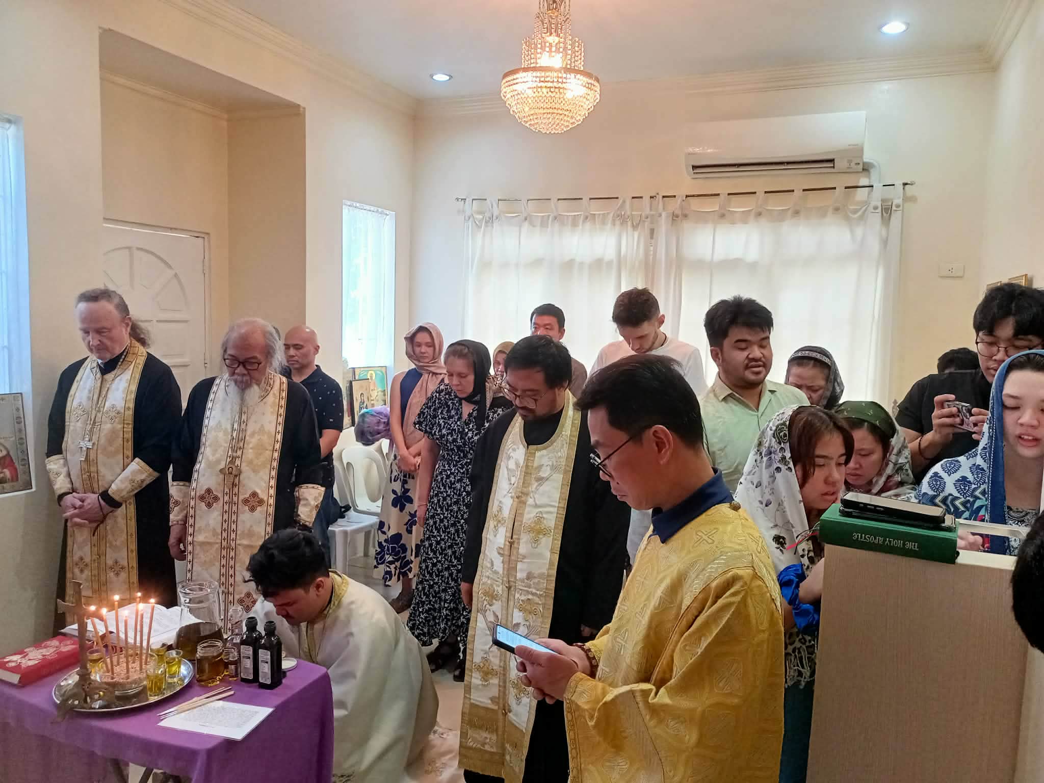 On Friday of the sixth week of Lent, the Sacrament of Unction took place at the Parish of the Iveron Icon of the Mother of God in Manila. Priests of the Manila Deanery participated: Archimandrite Philemon (Castro), Priest David Grubbs, Hieromonk John (Gondayao), and Priest Luke Abouna of the Antiochian Orthodox Church.