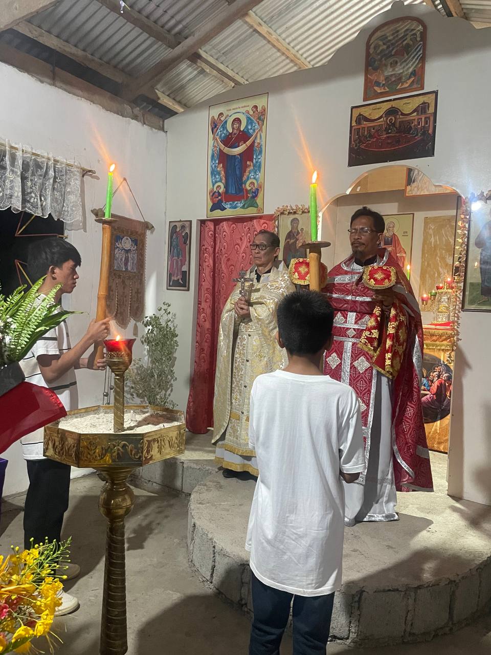 On Friday of the sixth week of Lent, the Sacrament of Unction took place at the Parish of the Iveron Icon of the Mother of God in Manila. Priests of the Manila Deanery participated: Archimandrite Philemon (Castro), Priest David Grubbs, Hieromonk John (Gondayao), and Priest Luke Abouna of the Antiochian Orthodox Church.