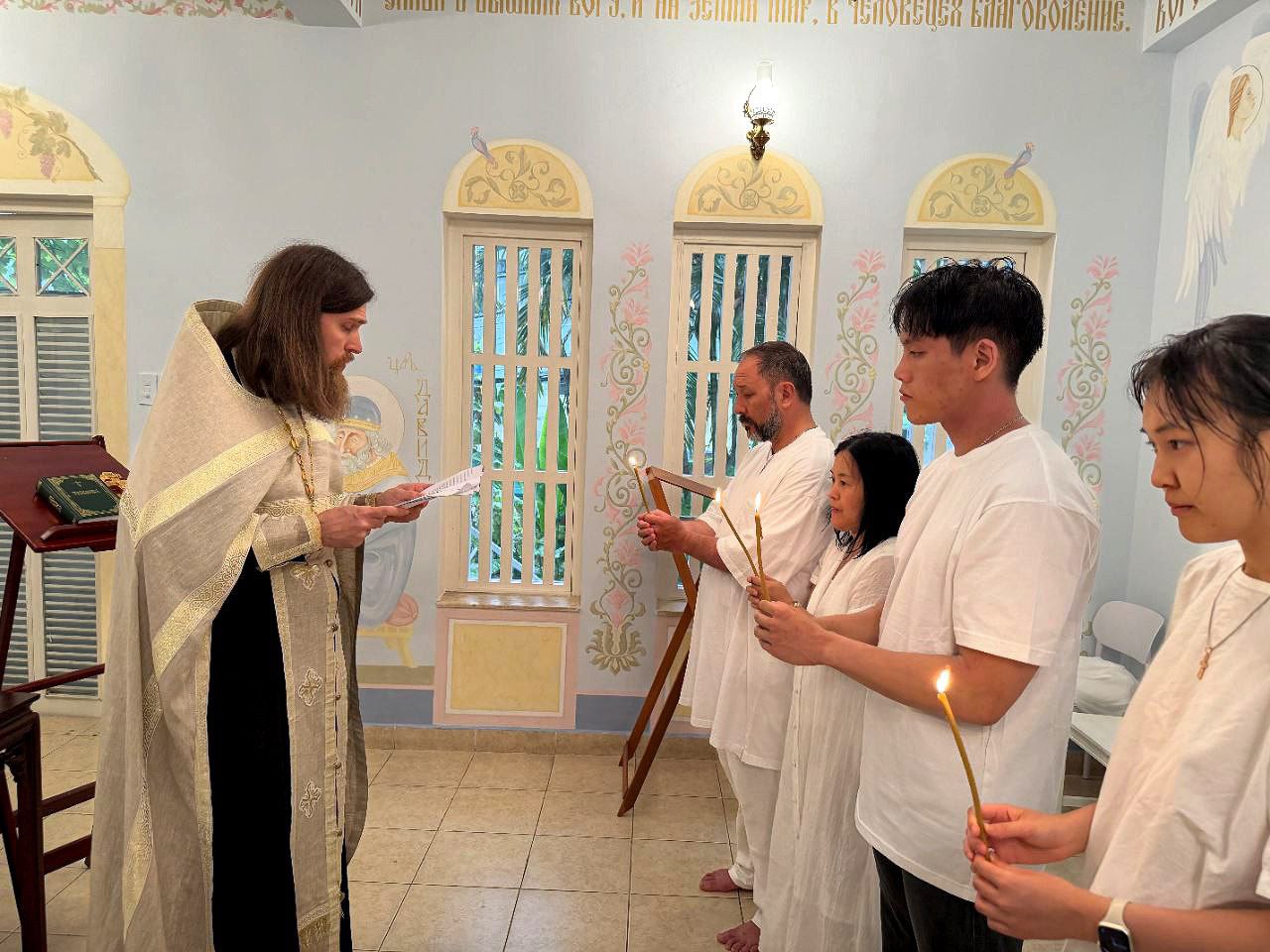 13 марта на приходе Покрова Пресвятой Богородицы в г. Хошимин во Вьетнаме настоятель прихода иерей Станислав Распутин совершил таинство Крещения четырех человек.