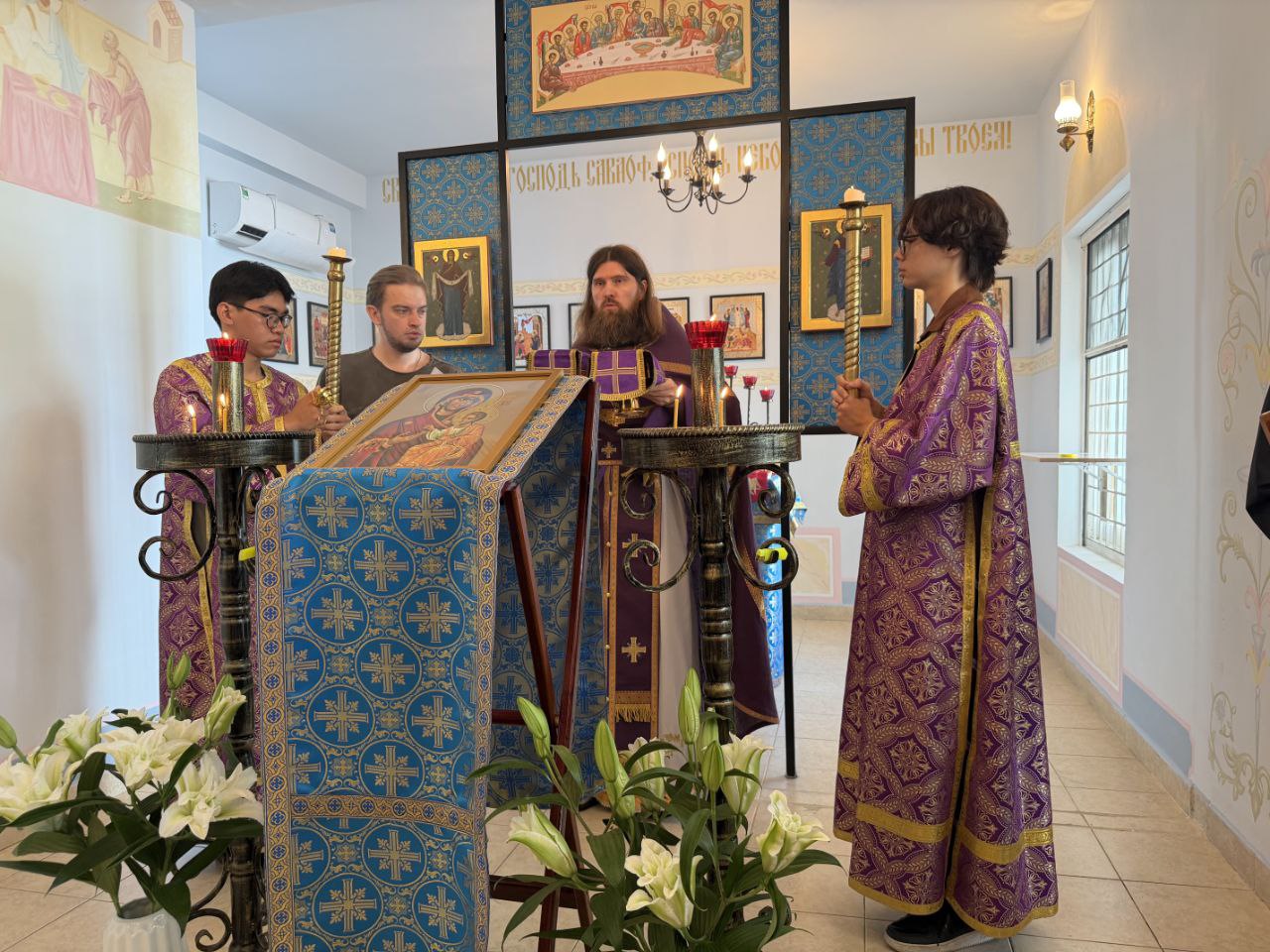 28 февраля, в субботу первой седмицы Великого поста, праздник Иверской иконы Божией Матери, день памяти великомученика Феодора Тирона, на приходе Покрова Пресвятой Богородицы г. Хошимин (Вьетнам) настоятель прихода иерей Станислав Распутин совершил Божественную литургию.