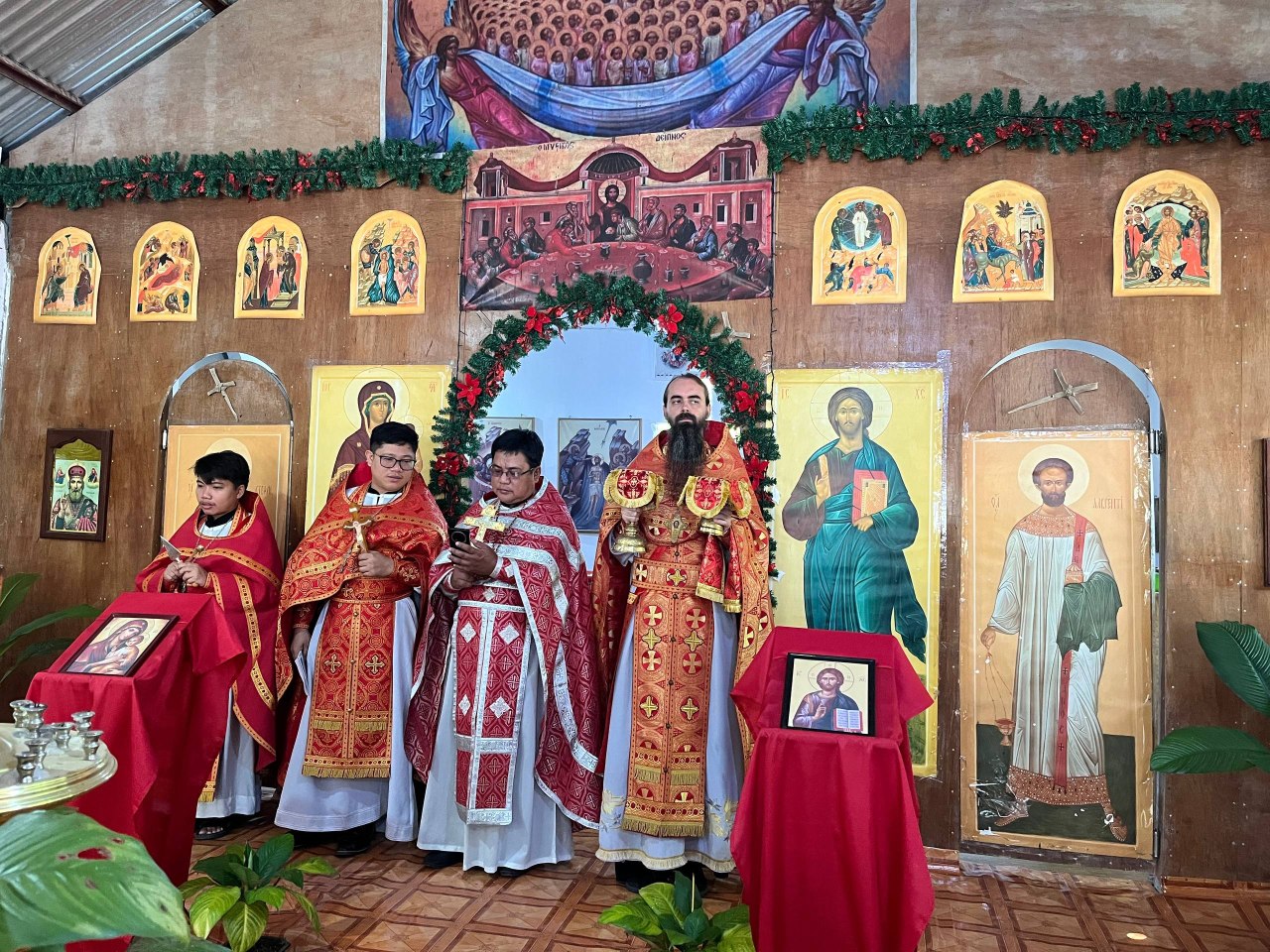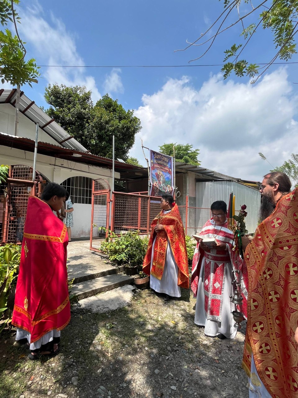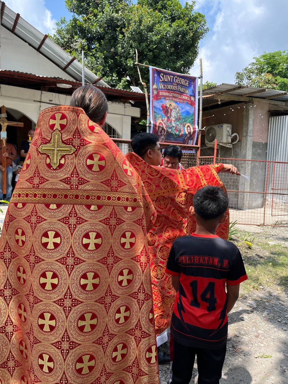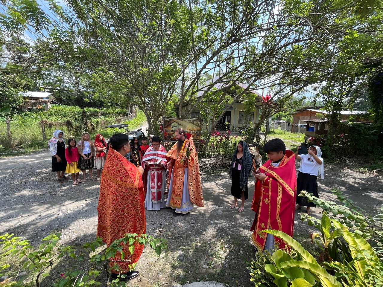 Богослужение совершили секретарь Филиппинско-Вьетнамской епархии иеромонах Корнилий (Молев), благочинный Генерал-Сантовского благочиния иерей Роман Буниэль, настоятель храма иерей Кирилл Бенялон и клирик благочиния иерей Димитрий Кахилиг.