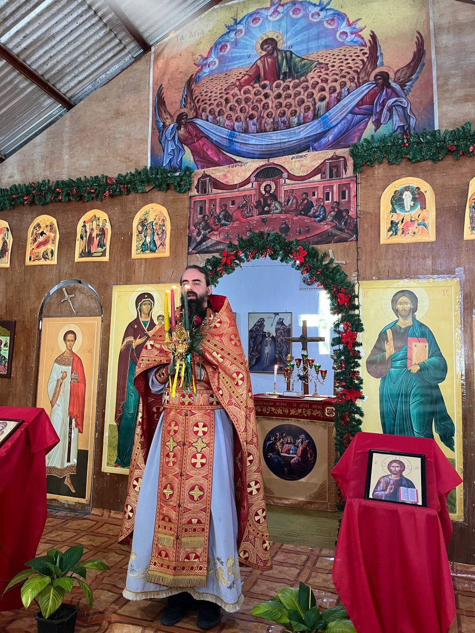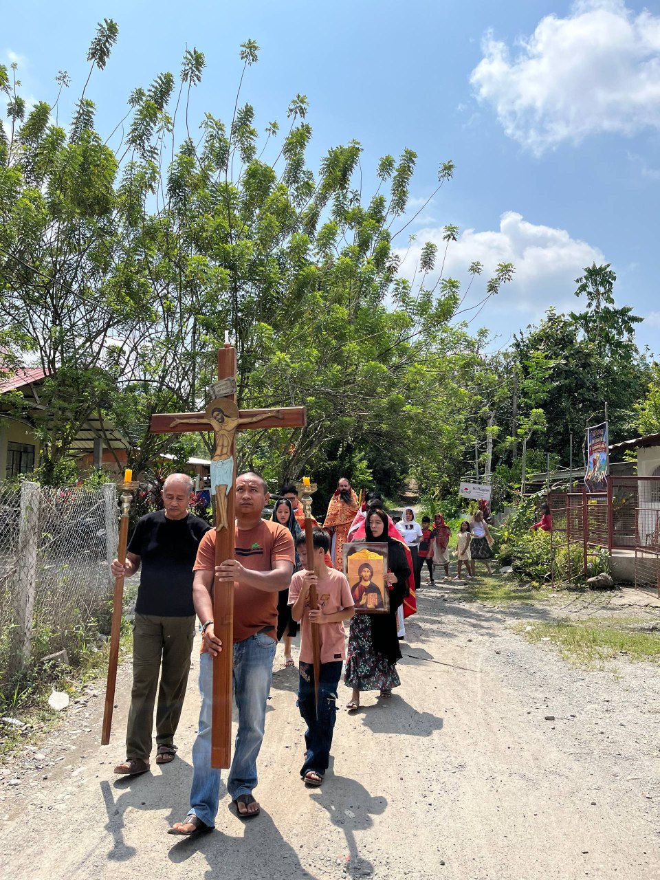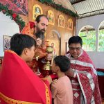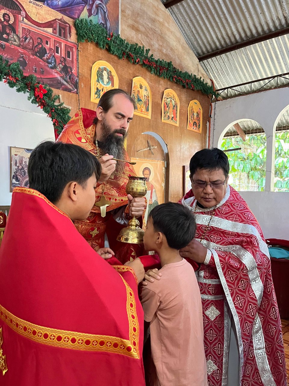Богослужение совершили секретарь Филиппинско-Вьетнамской епархии иеромонах Корнилий (Молев), благочинный Генерал-Сантовского благочиния иерей Роман Буниэль, настоятель храма иерей Кирилл Бенялон и клирик благочиния иерей Димитрий Кахилиг.
